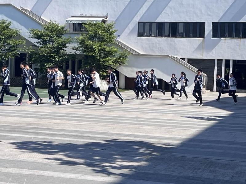 上午8:45各班有序开展活动。突然,启动了应急广播系统报警,急促的消防警报响了起来。“学校发生火情,请有序撤离!”在校领导、各班主任的安排下,学生有序快速安全撤离。