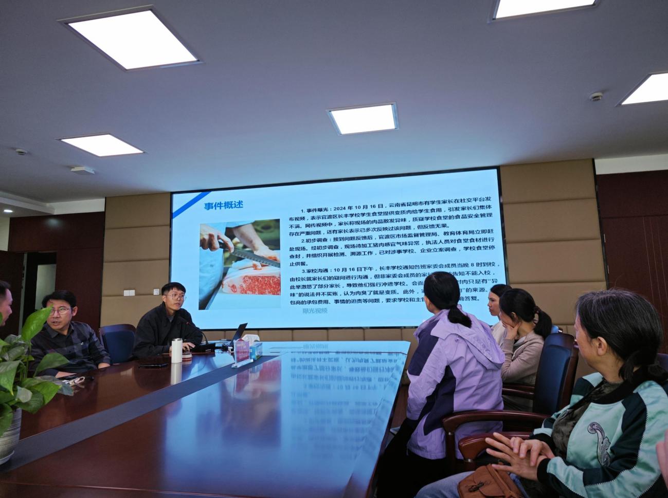 会议首先对云南昆明长丰食堂臭猪肉事件进行了详细概括。据悉,该事件中长丰食堂被发现使用了存在异味、疑似变质的猪肉作为食材,这一严重违反食品安全规定的行为引发了社会的广泛关注和师生的强烈不满,不仅对学生的身体健康构成了潜在威胁,也严重损害了学校食堂的形象和信誉。