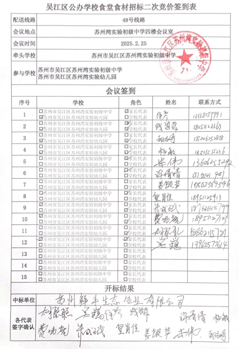 经过2025年3月25日全区统一的公办学校食堂食品供货商二次竞价开标,家长代表和学校代表共同参与表决,最终确定学校3月配送供应商为:苏州鲜丰生态农业有限公司。